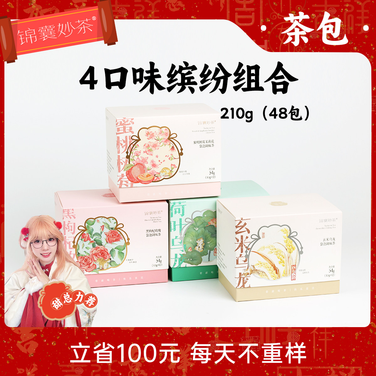 李陌茶早C晚A养生茶茶叶刺梨桑葚枸杞组合独立包装娇颜花草茶果茶