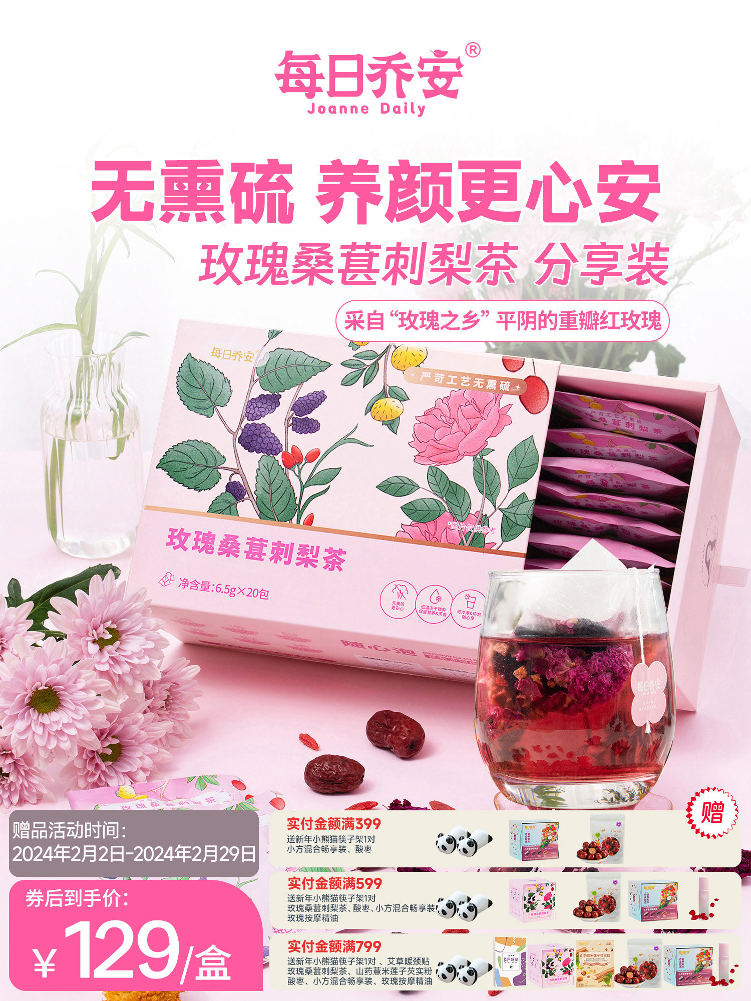 大漩早C晚A养生茶枸杞桑葚玫瑰花茶女独立包装娇颜花草茶果茶礼盒