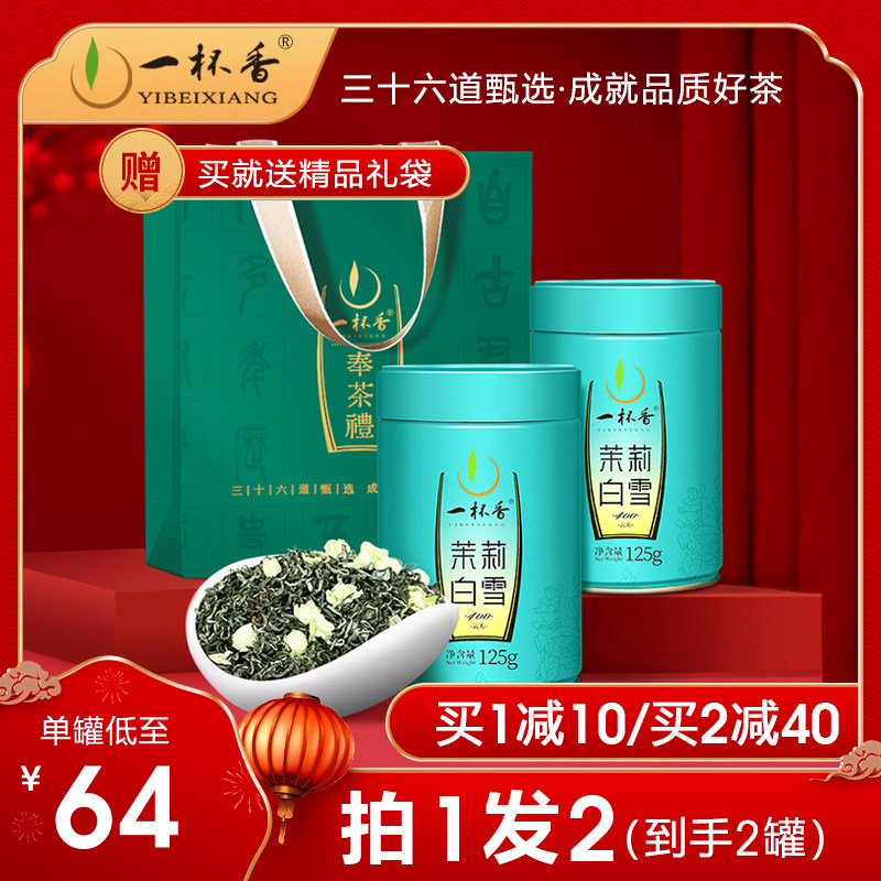 李陌茶茉莉飘雪绿茶茶叶横县茉莉花茶七窨独立包装花草茶精品礼盒