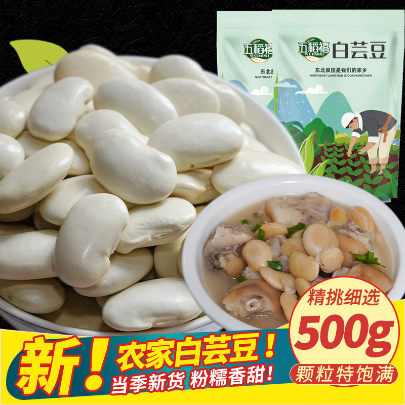 东北白芸豆白扁豆粒大饱满口感绵实色泽自然农家自种新货真空500g