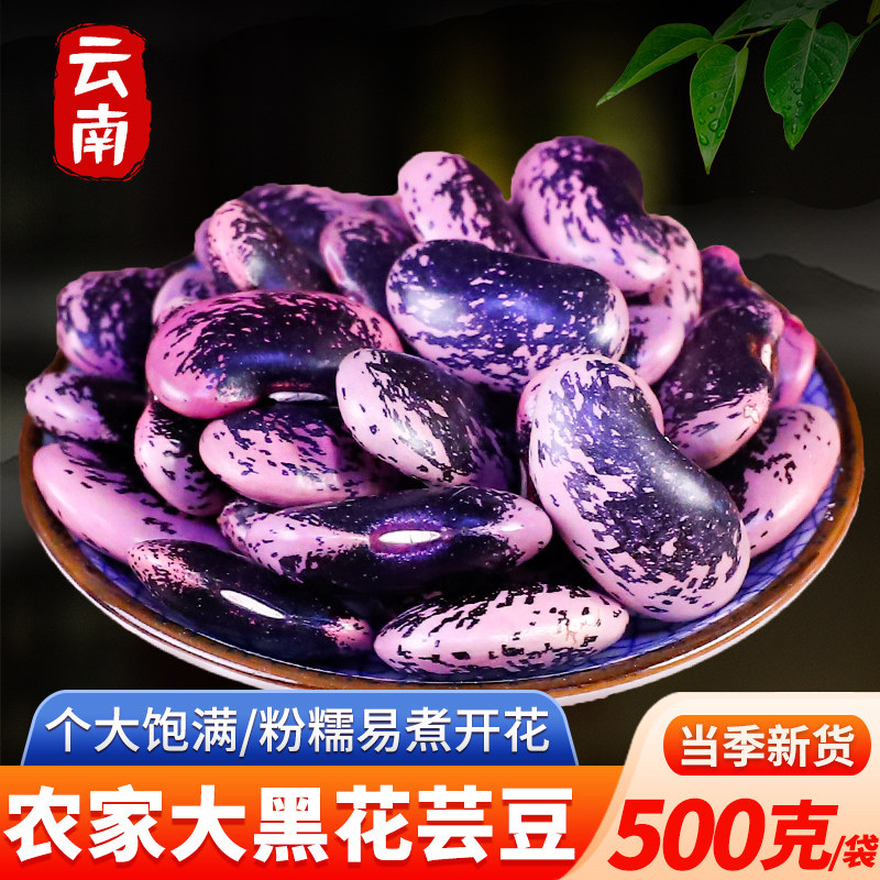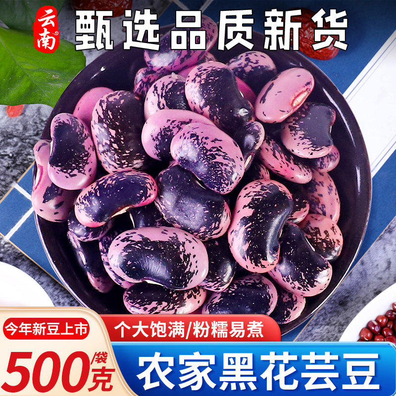 云南大黑花芸豆干货新货花腰豆大芸豆新鲜云豆大豆黑豆粗粮500g