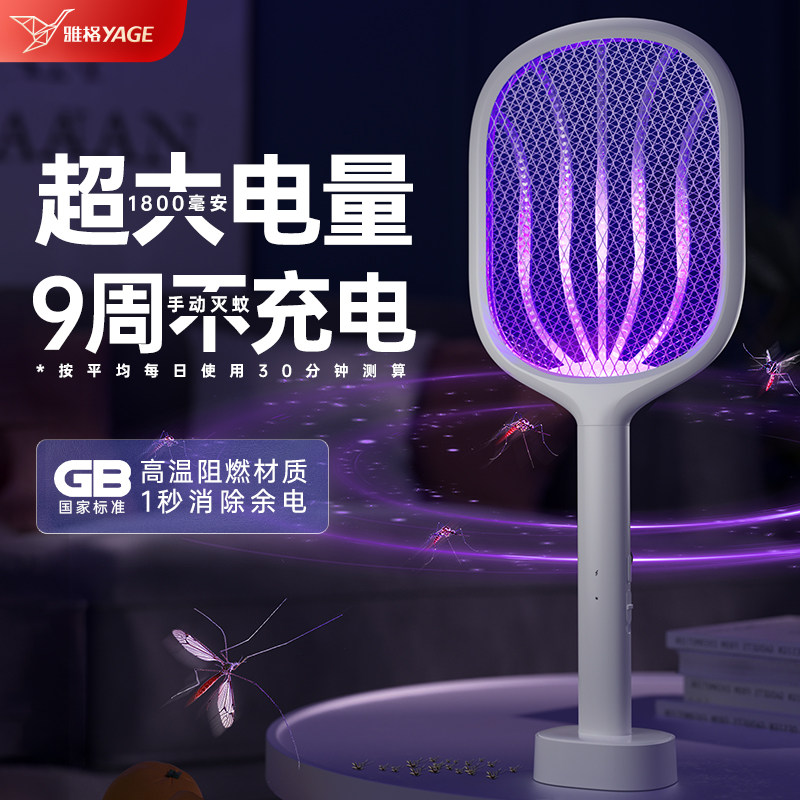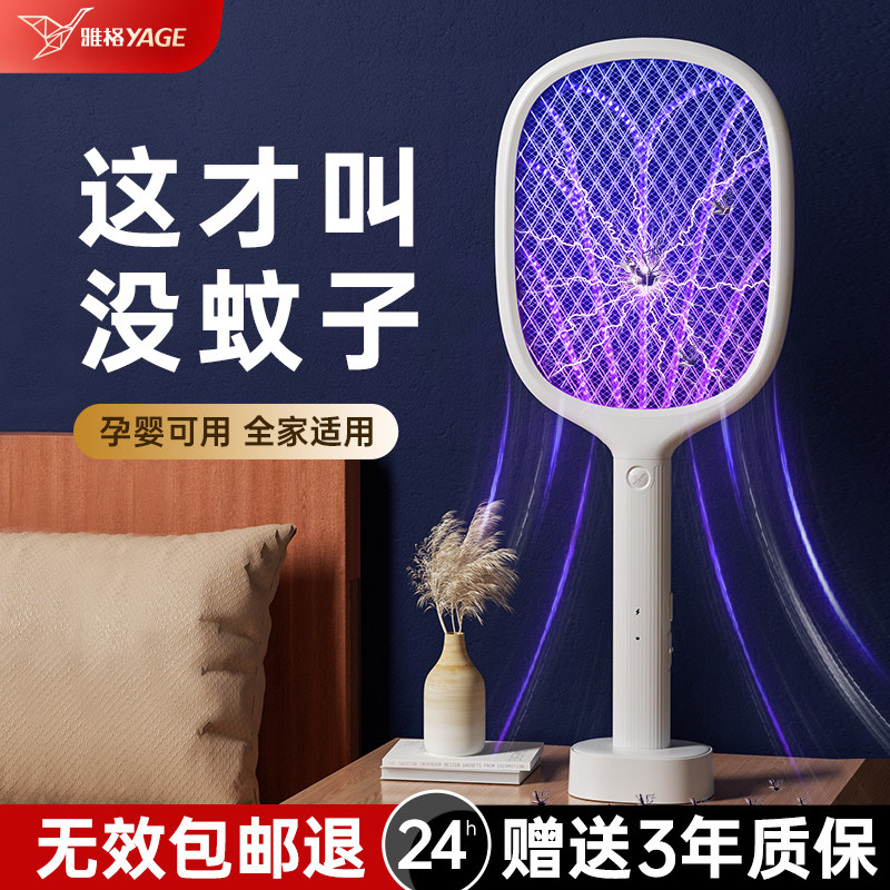 雅格电蚊拍充电式家用超强灭蚊灯二合一正品蚊香拍蚊子神器苍蝇拍