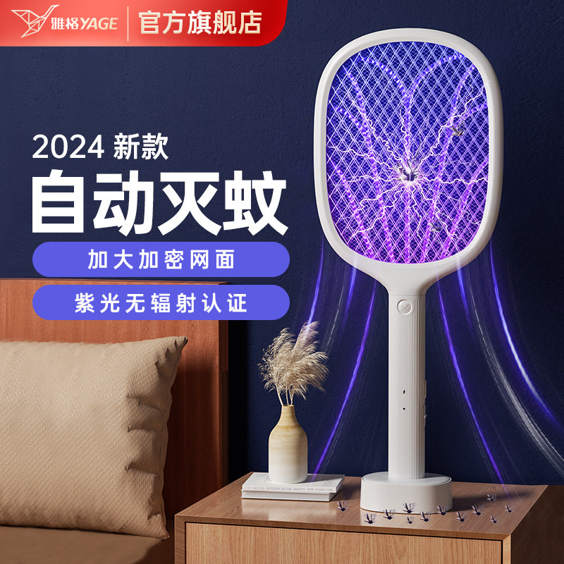 雅格电蚊拍充电式家用超强力2024新款蚊子电网拍打苍蝇电灭蚊器拍