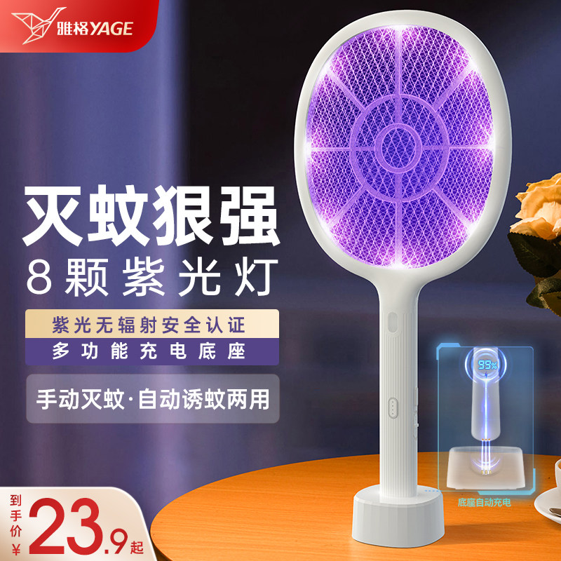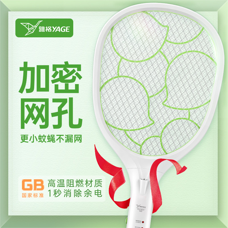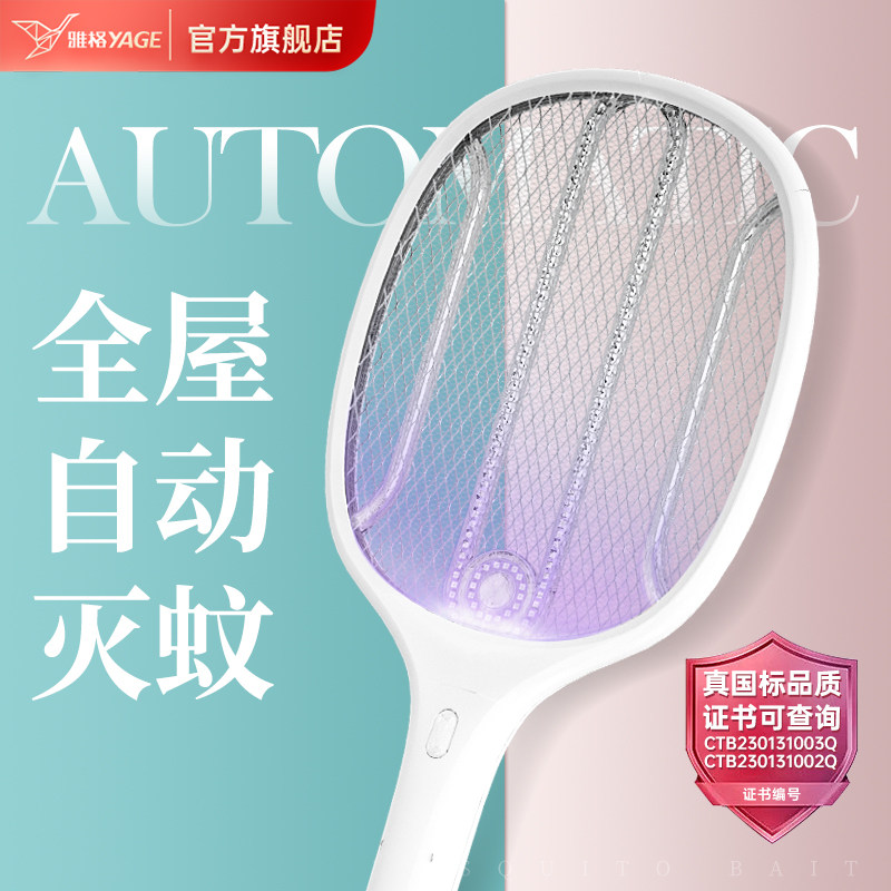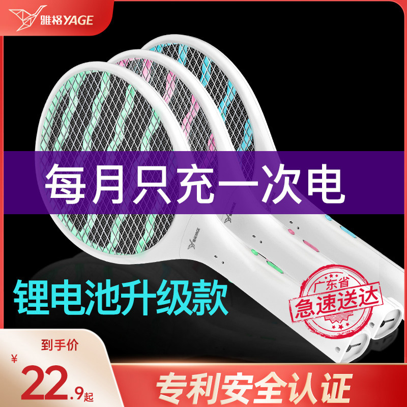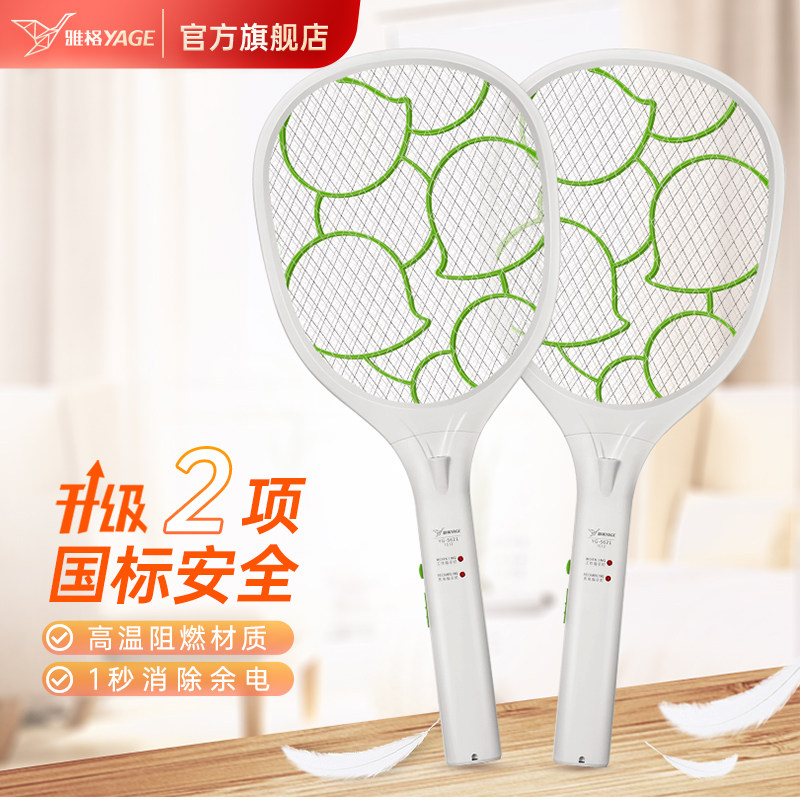雅格电蚊拍充电式家用超强力锂电池旗舰店电文器拍打蚊子苍蝇神器