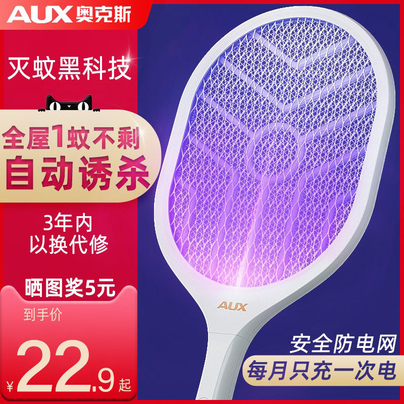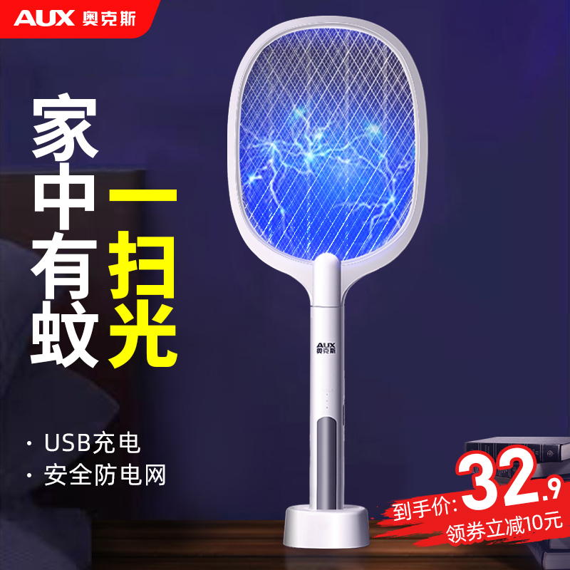 奥克斯电蚊拍充电式家用强力锂电池灭蚊灯二合一驱蚊神器打苍蝇拍