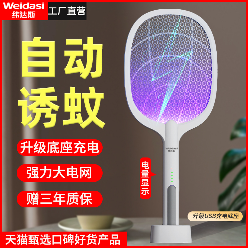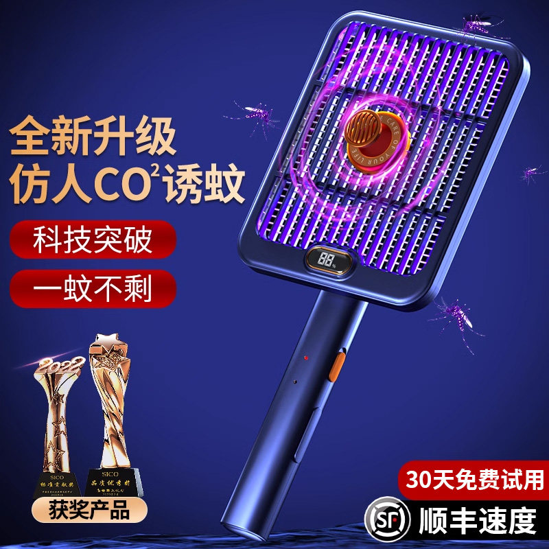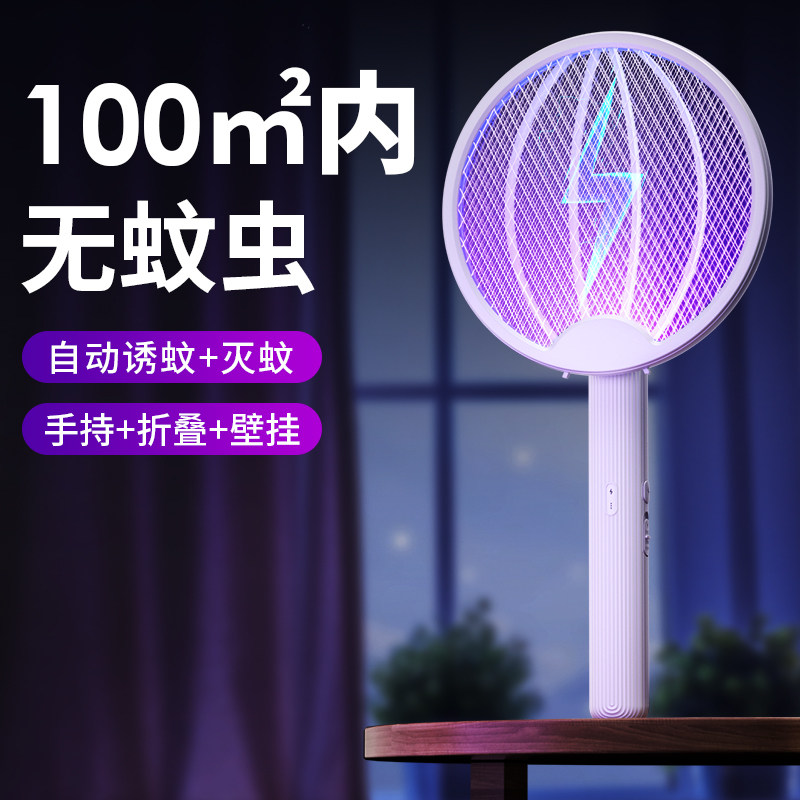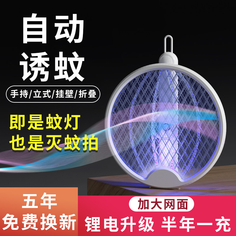 2024新款电蚊拍充电式家用超强力折叠自动诱蚊苍蝇拍灭蚊子灯神器