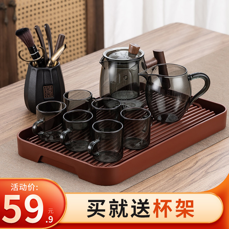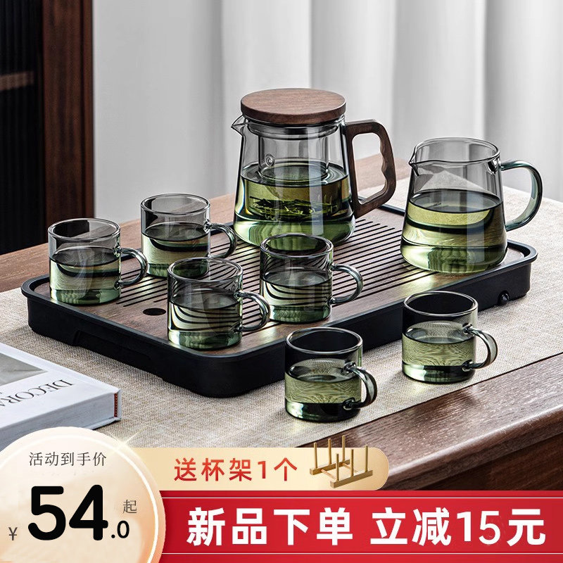 玻璃茶具套装家用茶盘小型办公室客厅喝茶功夫茶杯防烫耐热泡茶壶