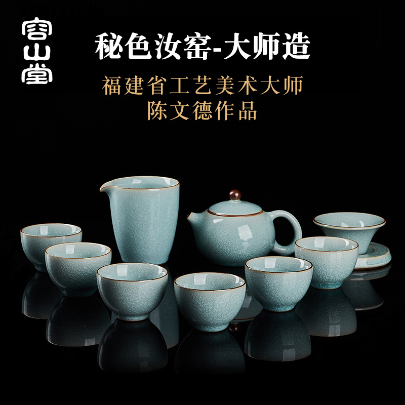 容山堂陈文德大师汝窑整套功夫茶具套装可养开片家用收藏高档礼品