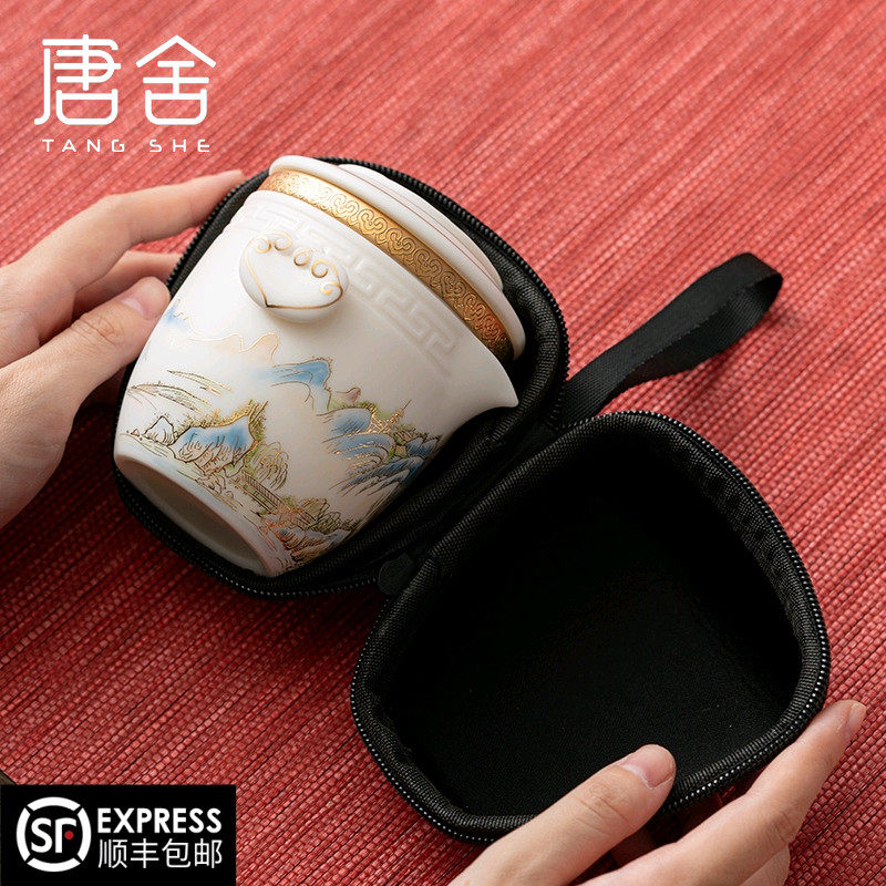 万仟堂快客杯便携随身茶具套装陶瓷家用户外露营旅行茶具大吉大利