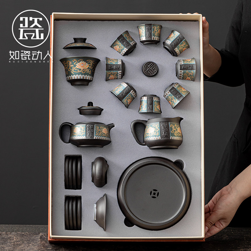 如瓷动人紫砂功夫茶具套装家用茶壶茶杯高档新款高档商务伴手礼物