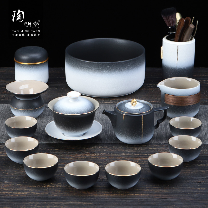 陶明堂功夫茶具套装简约渐变轻奢办公家用喝茶泡茶日式茶壶盖碗