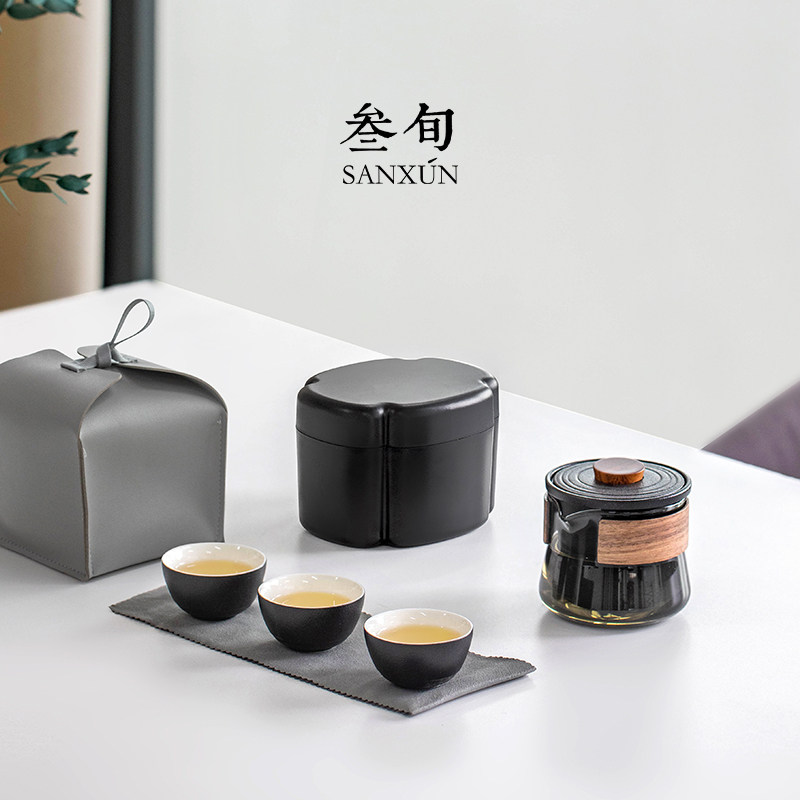 叁旬似水榴年快客杯便携式户外一壶三杯喝茶装备高端旅行茶具套装