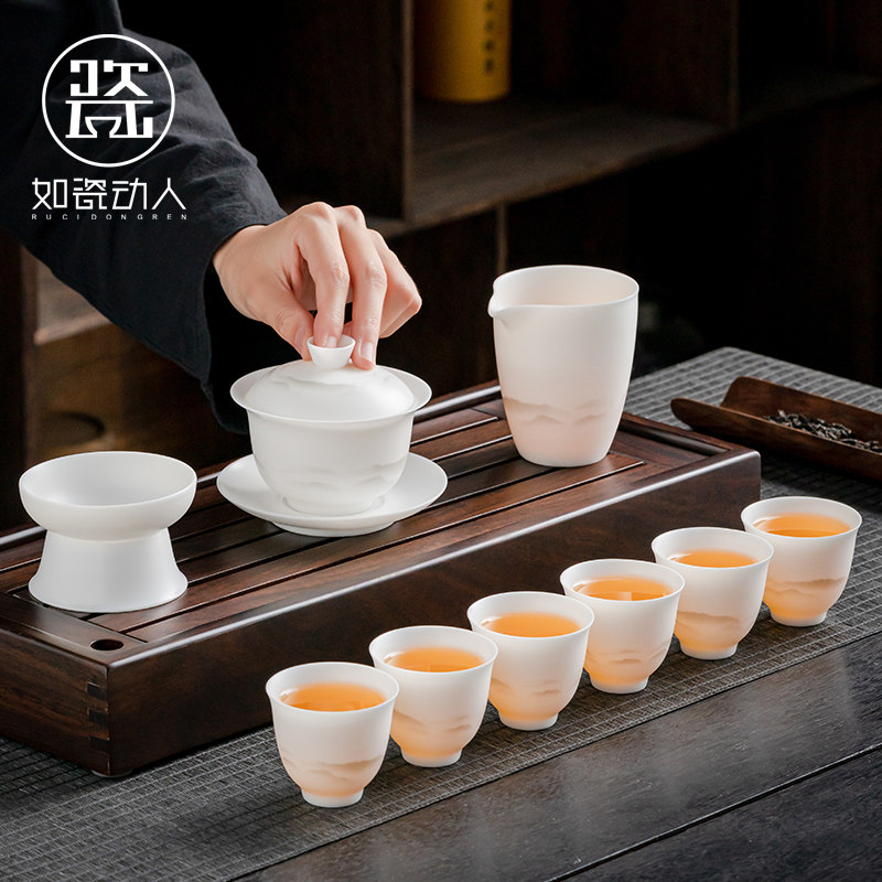 如瓷动人羊脂玉白瓷功夫茶具套装家用轻奢高档2023新款盖碗礼盒装