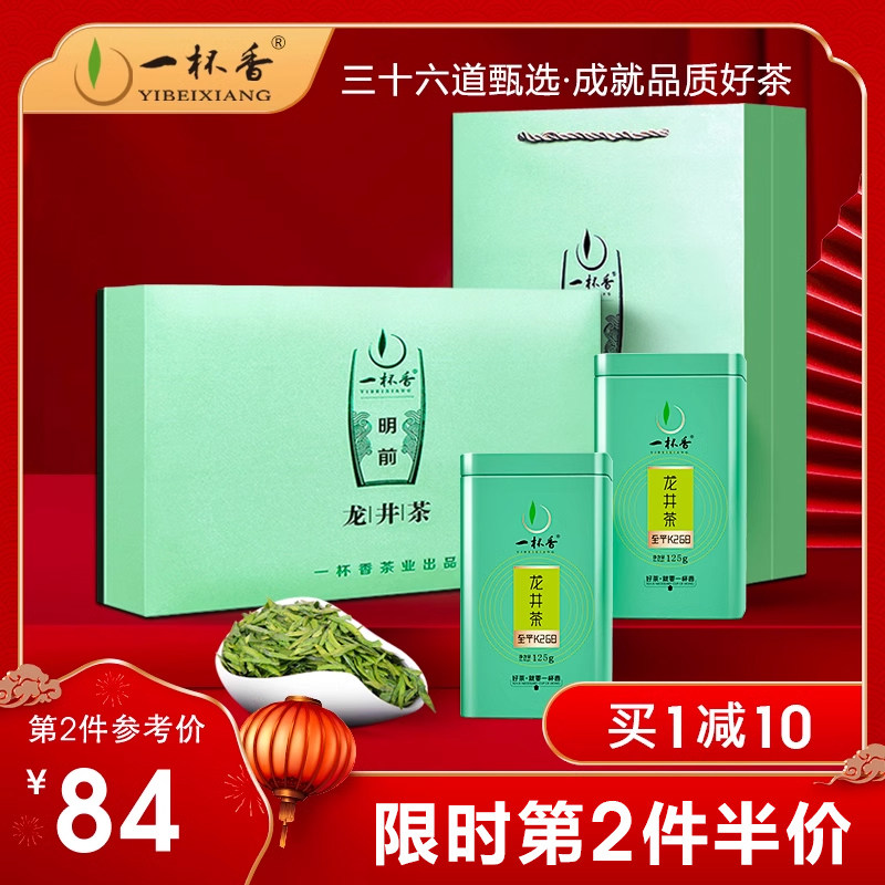一杯香龙井茶礼盒装250g明前茶叶绿茶浓香官方旗舰店年货送礼长辈