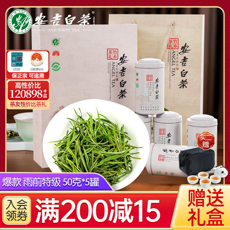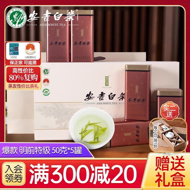 安吉白茶2023新茶特级绿茶叶250g送礼盒装高山春茶官方正品旗舰店