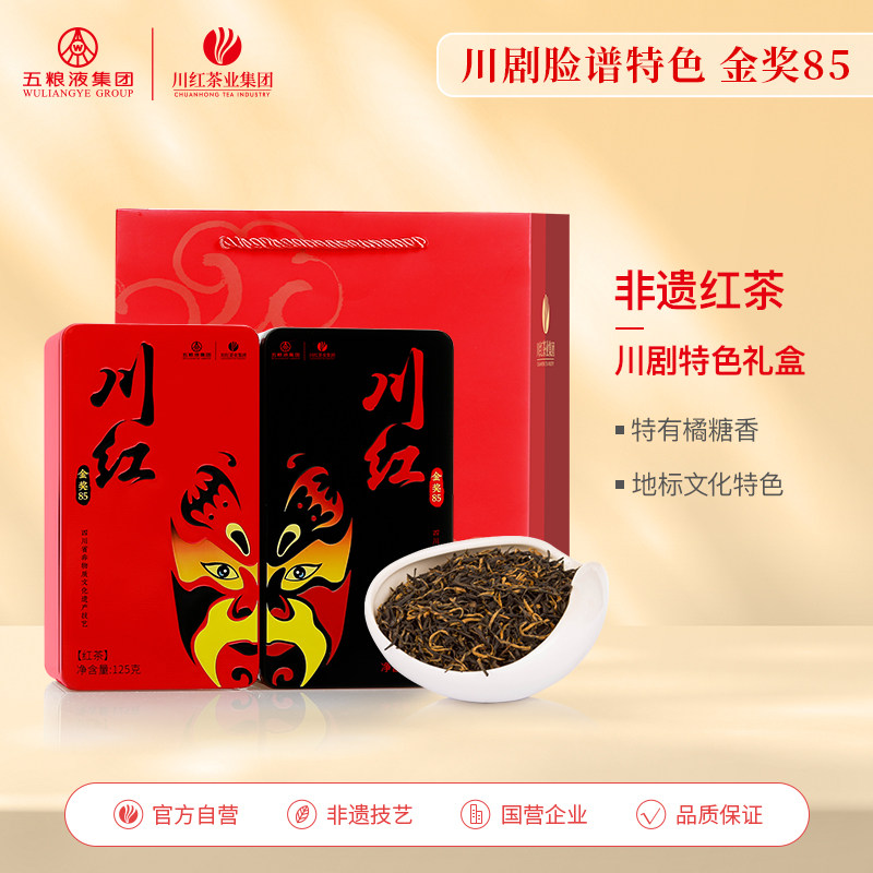 川红官方特级金奖85工夫红茶经典浓香型茶叶礼盒装赠手提礼袋250g