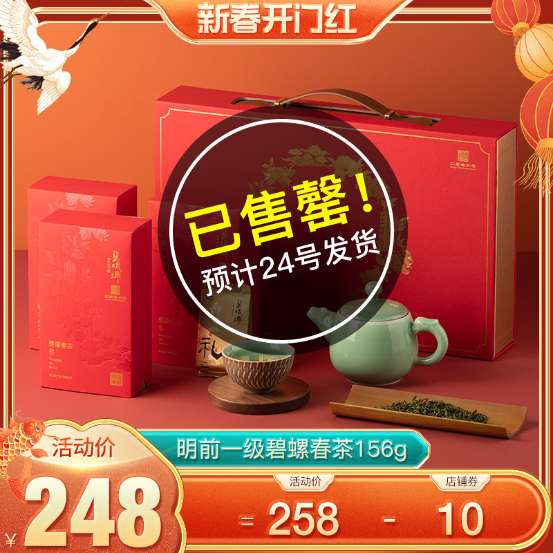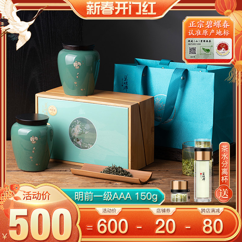 2023新茶上市碧螺春明前一级绿茶洞庭茶叶经济实惠送人礼盒装156g