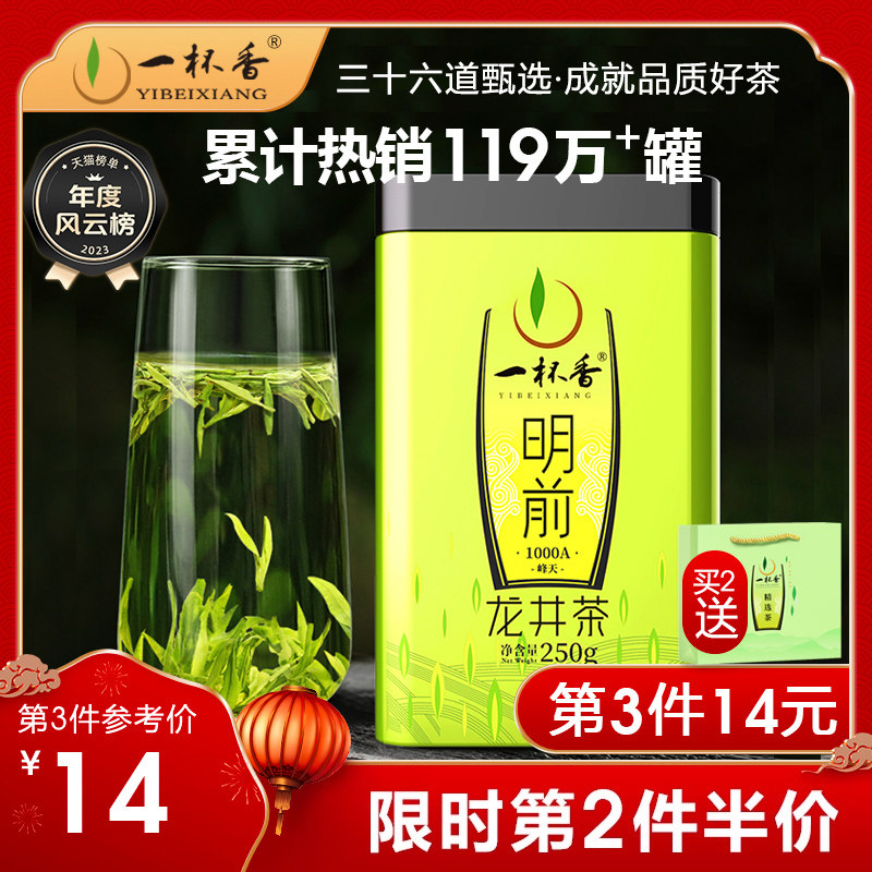 一杯香龙井茶明前茶叶绿茶礼盒自己喝2023新茶官方正品旗舰店