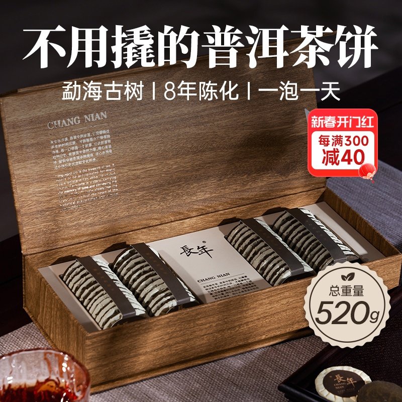 五虎云南普洱茶熟茶茶饼熟普洱茶叶自己喝礼盒以上官方正品糯米香