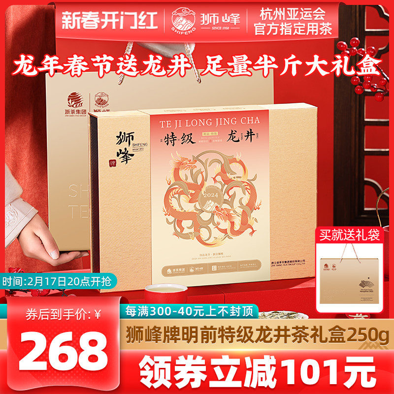 龙年新品2023新茶狮峰牌绿茶叶礼盒装明前龙井茶特级250g送礼长辈