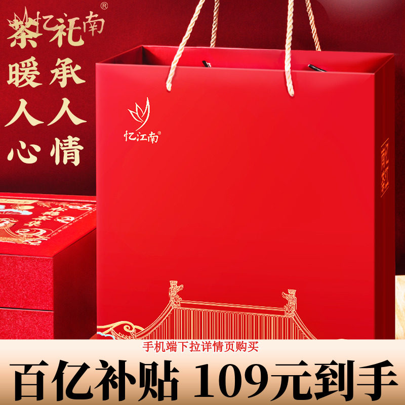 茶叶礼盒装明前龙井茶忆江南茶叶绿茶新年礼送人领导年货龙年礼盒