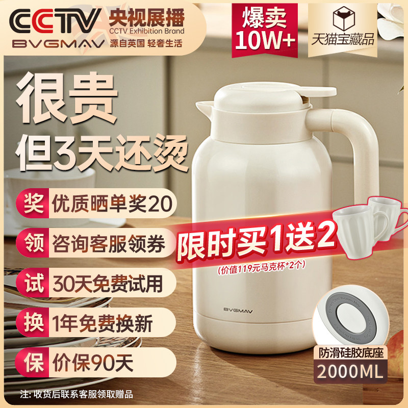 英国Bemega智能保温壶大容量茶水分离焖茶壶男新款户外旅行热水壶