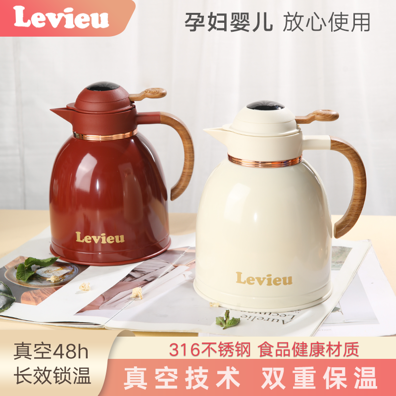 levieu保温壶结婚陪嫁水壶一对红色暖壶小焖茶壶家用热水瓶闷泡壶
