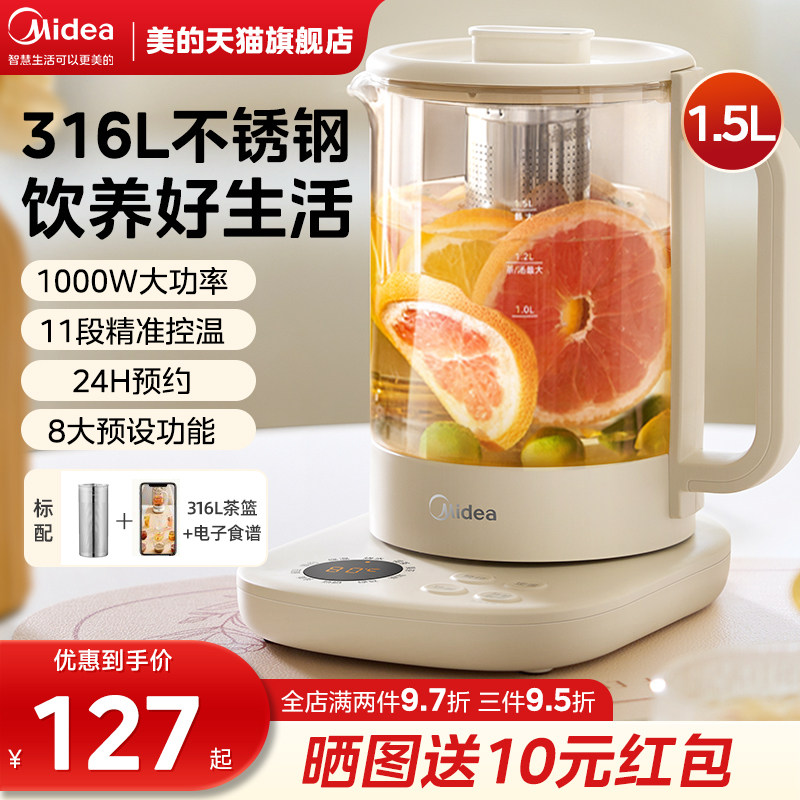 美的养生壶小型办公室养生杯家用煮茶器多功能烧水壶花茶壶煮水壶