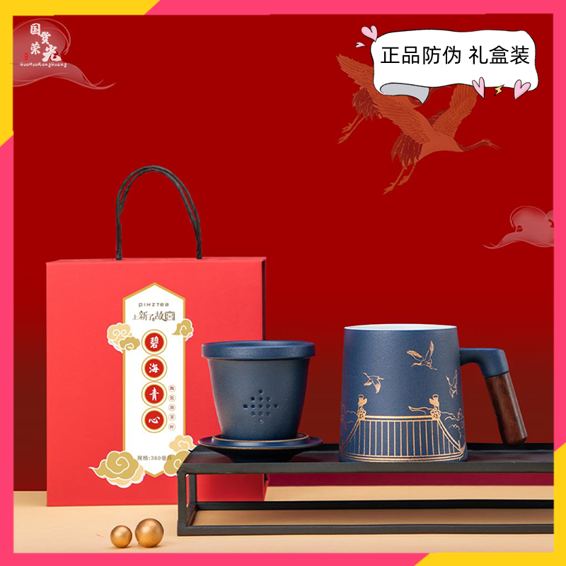 上新了故宫 碧海青心陶瓷泡茶杯茶漏杯便携实用水杯创意杯子礼品A