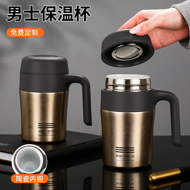 保温杯带手柄陶瓷内胆泡茶杯子新款2024男士高档办公室大容量水杯
