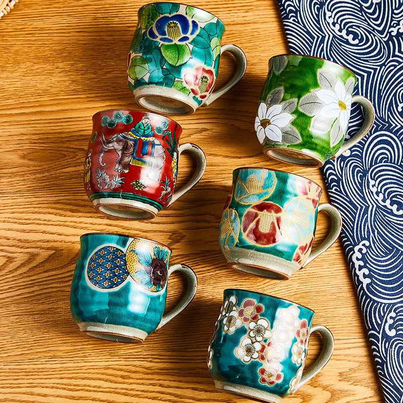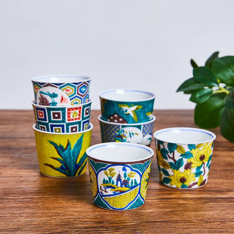 [陶瓷王]日本进口九谷烧青郊窑彩绘茶杯猪口杯复古风陶瓷杯主人杯