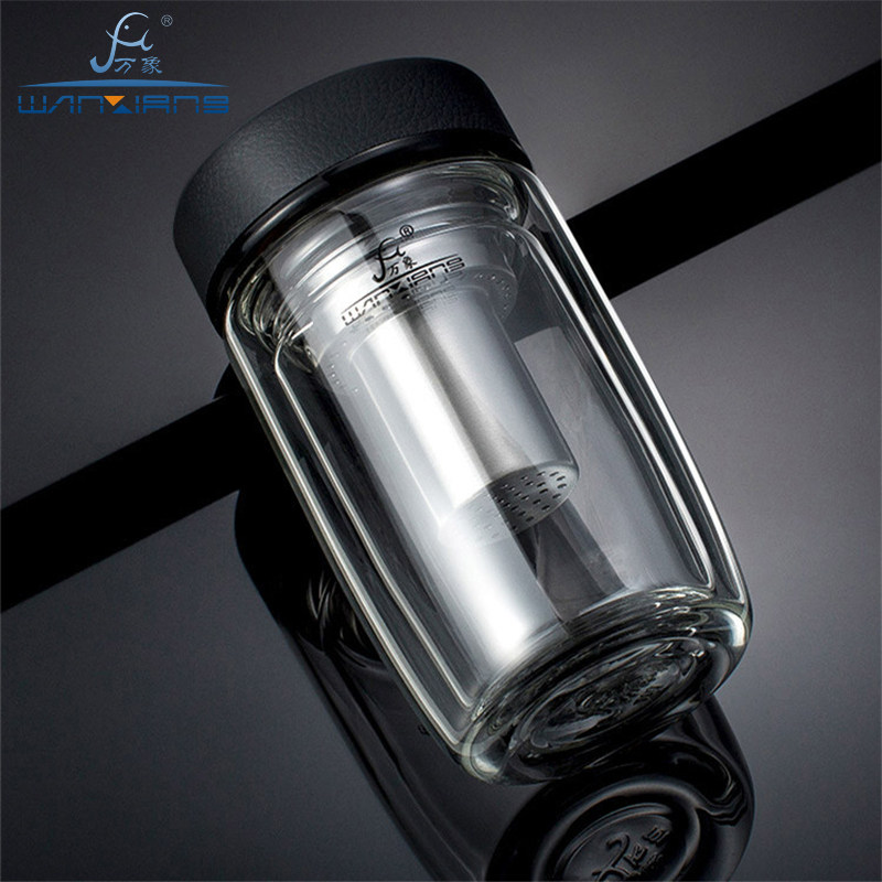 正品万象双层玻璃杯高档耐热便携男士女士茶杯带杯盖水杯V23 V25