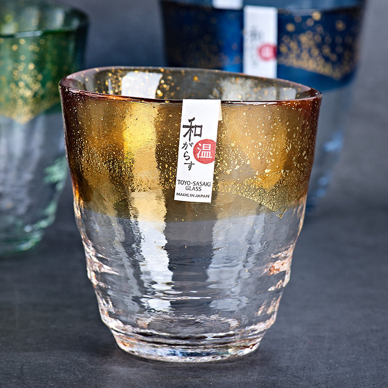 日本进口东洋佐佐木和温系列彩色金箔日式家用玻璃耐热水杯茶杯