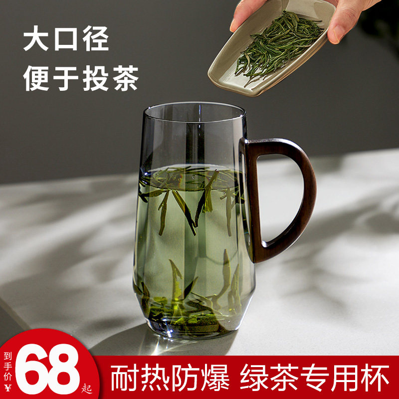日式茶杯泡绿茶专用玻璃杯毛尖龙井冲泡杯子带把手办公室个人水杯