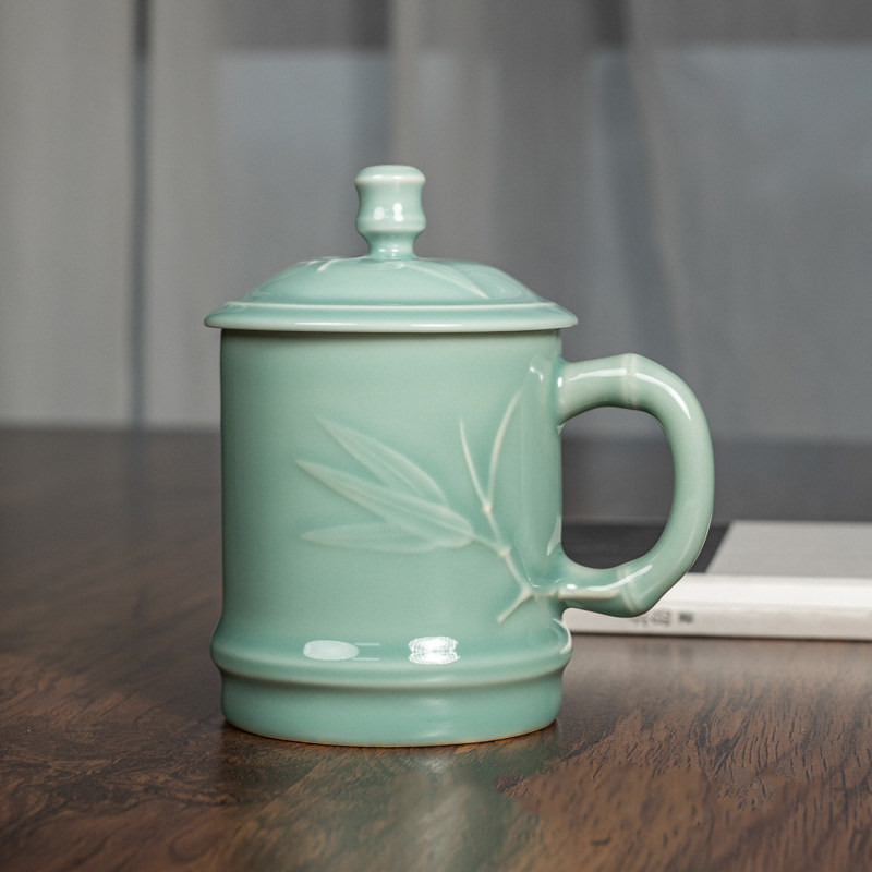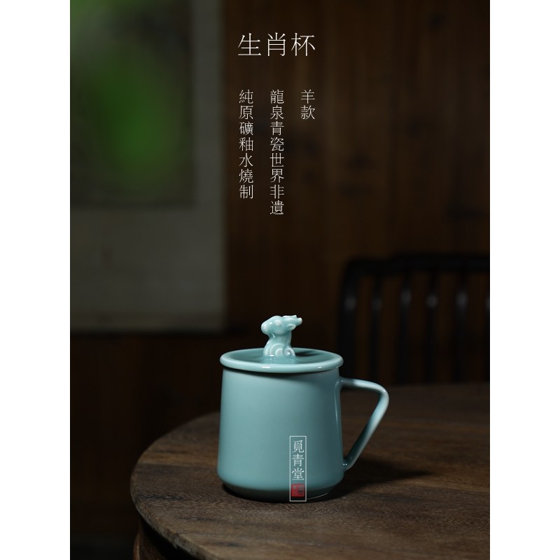 青瓷茶杯带盖高档家用办公室主人杯陶瓷个人专用泡茶马克杯礼盒装
