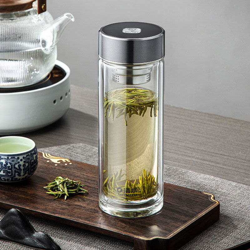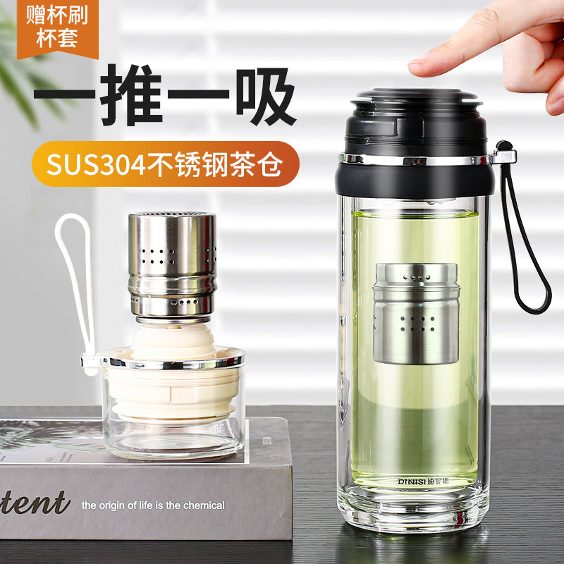清水双层玻璃杯男女茶杯高硼硅耐热防爆耐高温透明茶水分离泡茶杯