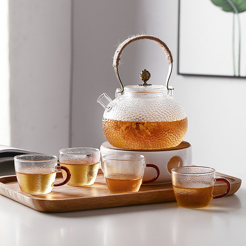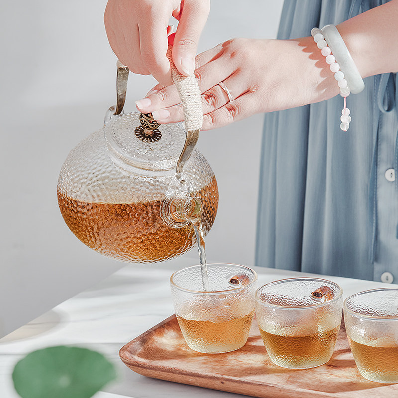 玻璃茶壶家用泡茶耐高温烧水壶茶杯套装锤纹单壶煮茶器下午茶茶具