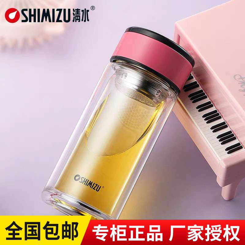 清水双层玻璃杯茶水分离泡茶杯家用水杯防烫隔热办公室杯子男女