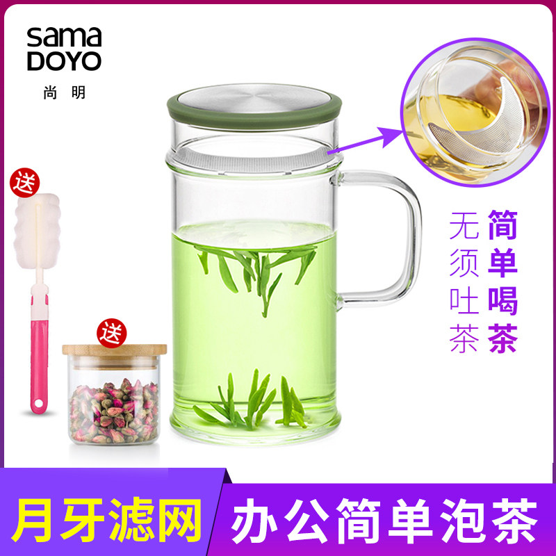 尚明玻璃杯带过滤网泡茶杯家用带盖透明水杯子带把办公室男喝茶杯