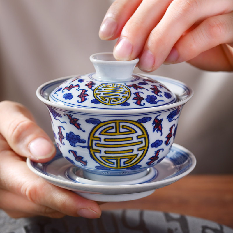 陶瓷盖碗大号盖碗茶杯茶碗青花瓷薄胎泡茶碗三才碗手抓壶敬茶碗