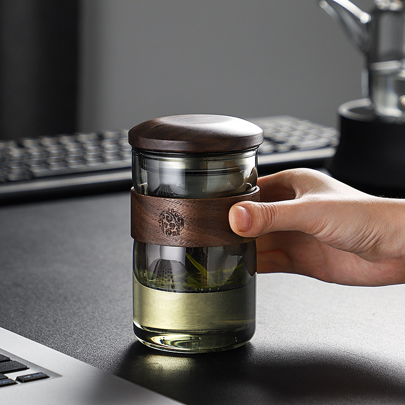 水杯玻璃杯大容量防摔耐热便携茶杯个人专用茶水分离带盖男士杯子