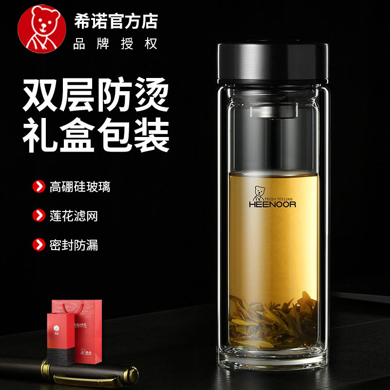 希乐玻璃杯高档水杯男茶水分离新款双层耐热家用商务办公泡茶杯子