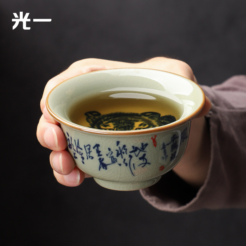 冰花主人杯功夫茶杯套装冰裂釉开片汝窑茶具品茗杯裂纹杯陶瓷礼盒