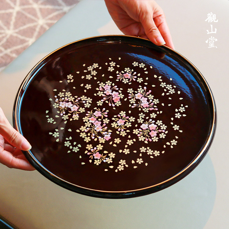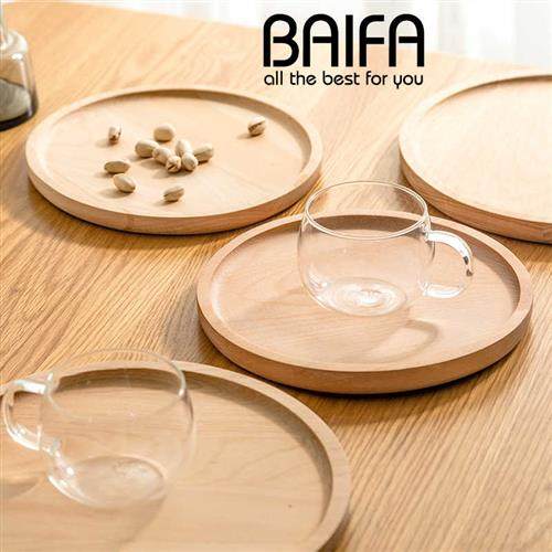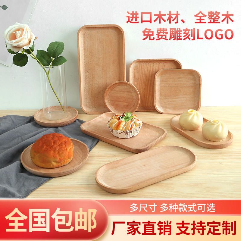 家用日式圆形木质托盘面包糕点烘焙茶盘酒杯杯子杯盘商用实木餐具