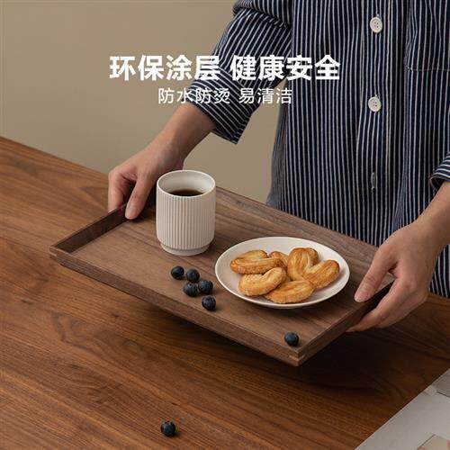 长方形实木托盘黑胡桃木茶盘家用客厅木质餐盘零食干果水杯收纳盘