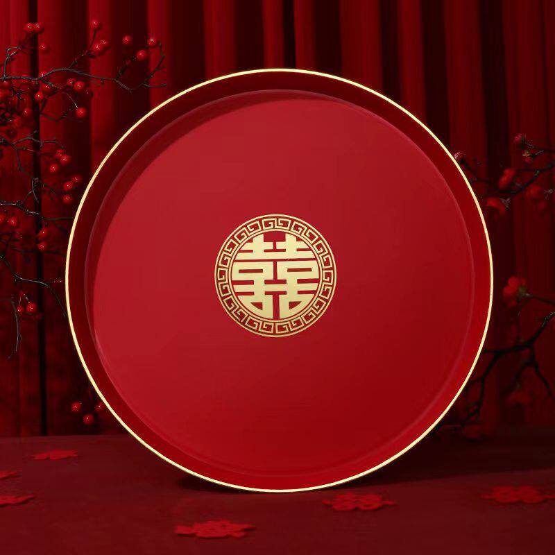 结婚庆用品红色订婚中式花生干果托盘喜糖果敬茶盘果盘子婚礼大全