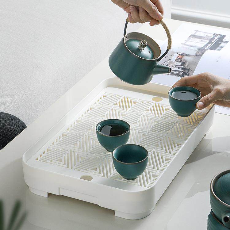 家用托盘茶盘餐盘轻奢风长方形放茶水杯子组合套装创意塑料水果盘