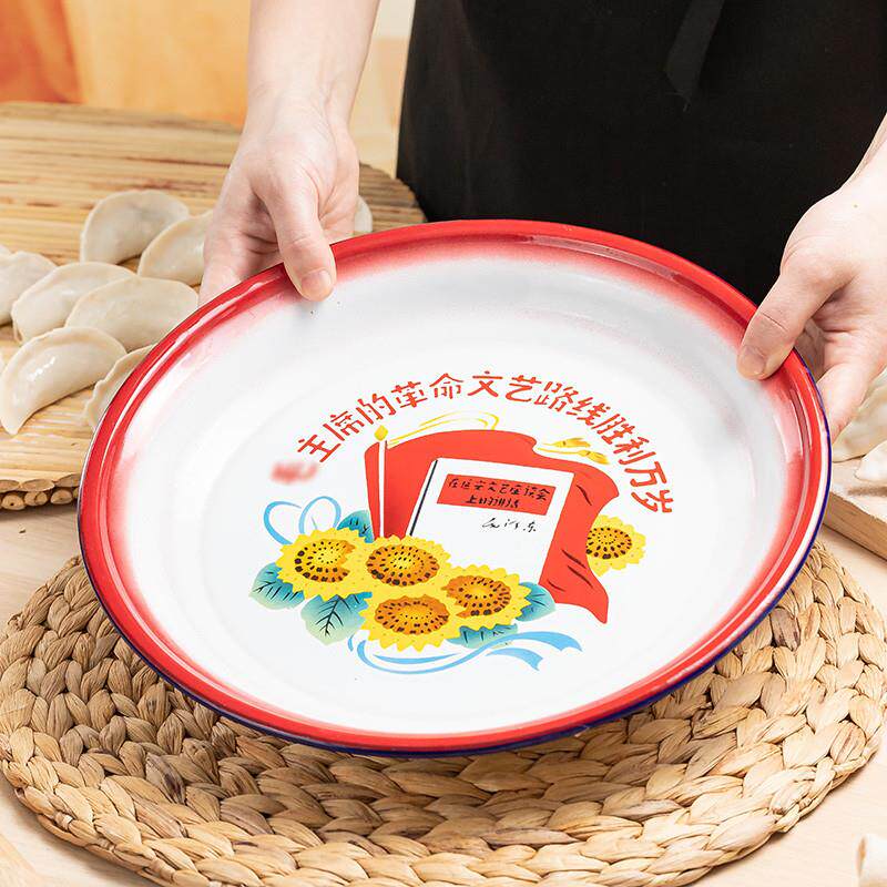 放饺子不粘底老式喜搪瓷圆形复古放瓜子花生盘子茶盘