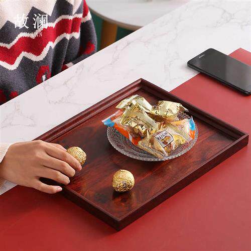 故澜结婚托盘长方形红色实木婚礼用品喜庆敬茶喜盘糖果盘茶盘茶托
