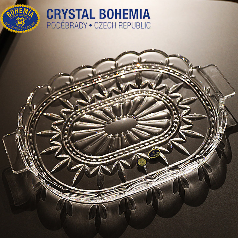 欧式水晶玻璃长方形托盘创意水果盘刻花茶几水杯盘干果盘茶盘